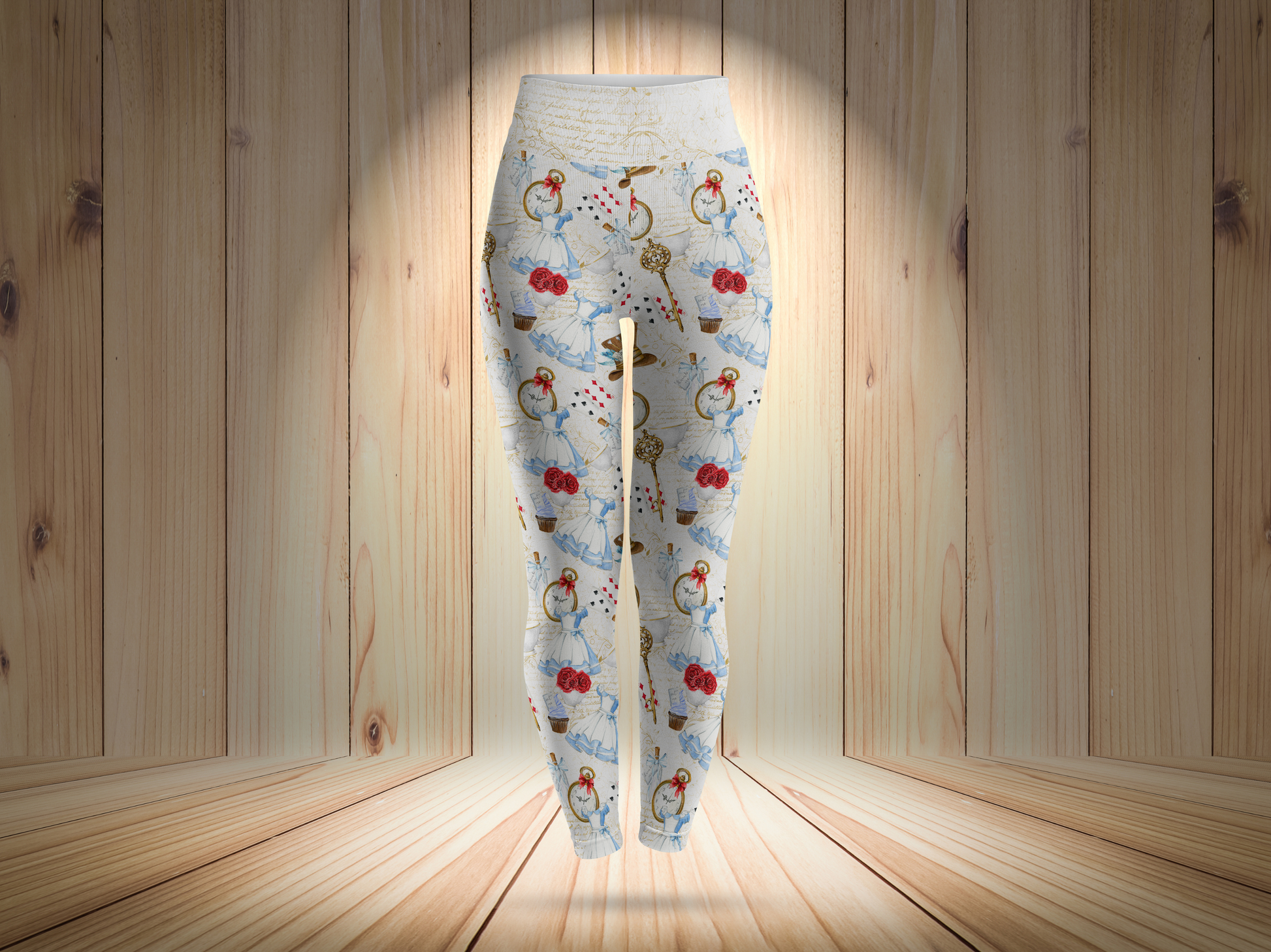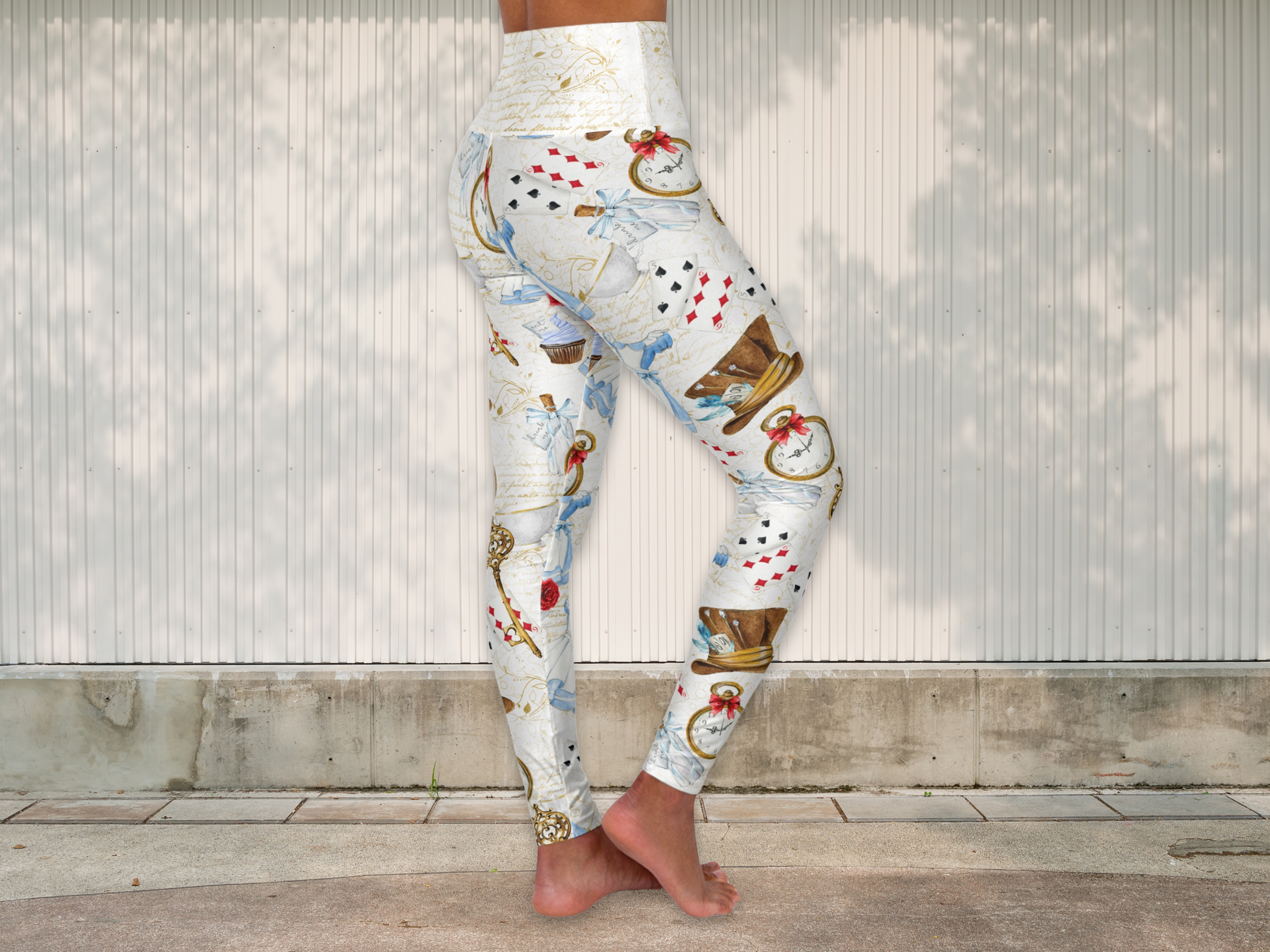 Step into a world of wonder with these Whimsical Storybook Leggings, inspired by vintage fairytales and enchanting tea party scenes. These high-waisted leggings feature delicate illustrations of teacups, roses, playing cards, and antique keys — a nod to a classic storybook fantasy world. Perfect for dreamers, book lovers, and anyone who adores elegant, artistic fashion.