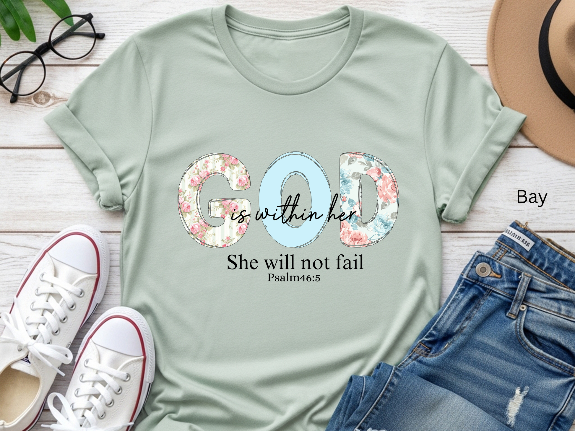 Express your faith with this beautiful God Is Within Her t-shirt featuring Psalm 46:5. This Christian tee showcases a delicate floral and pastel design, perfect for women who love faith-based fashion. Made from soft Comfort Colors fabric, it’s a comfortable, stylish, and inspirational choice for daily wear, Bible study groups, church, or casual outings.