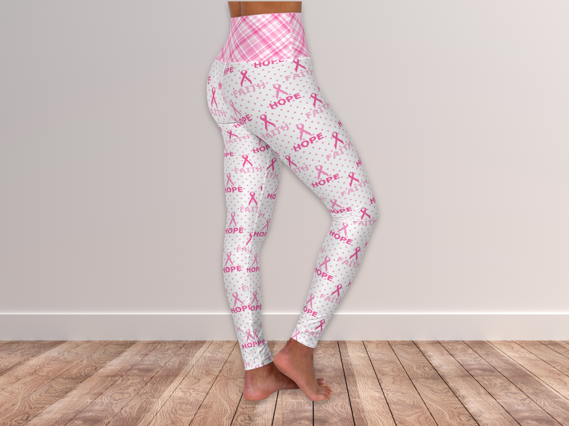 Pink Breast Cancer Awareness Ribbon Leggings for Women